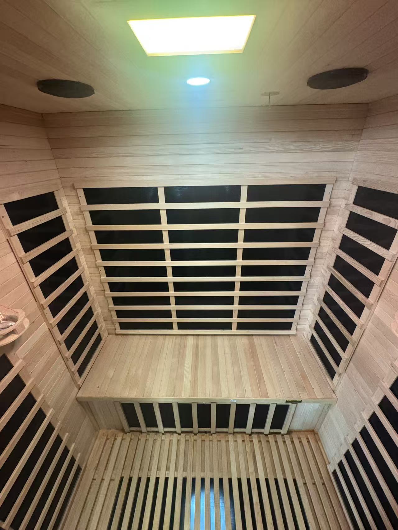 For infrared saunas, they are designed for easy DIY assembly in just 45 minutes! The panels include built-in electrical elements, so no electrician is required. Additionally, no plumbing or ventilation is needed in the room. Simply connect the panels using the provided buckles and plug them into a standard 10A domestic power socket. It comes flat-packed on a pallet, consisting of one or more packages.